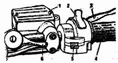 - рукоятка дросселя карбюратора 4 (рис. 5), рычаг топливного корректора
