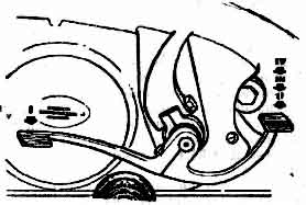 Нажатием на рычаг приводятся в действие тормоза заднего колеса и